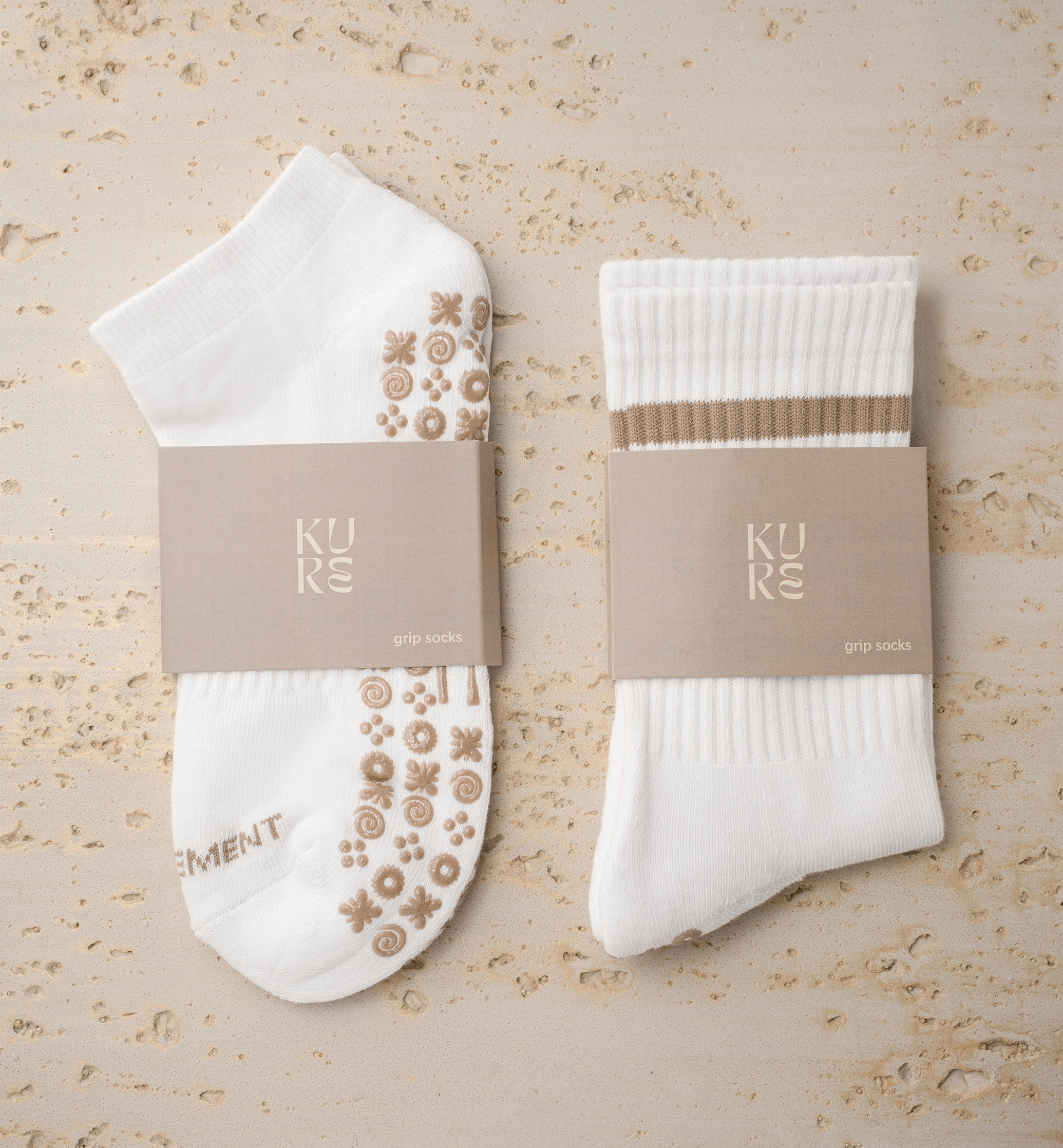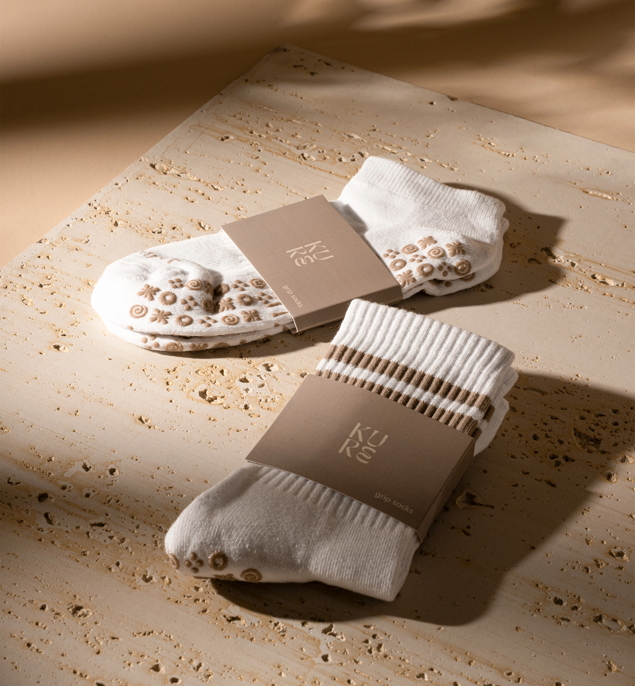• Low-Cut: : Subtle KURE mantras—Power • Balance • Movement • Wellness —offer quiet motivation every time you glance down.