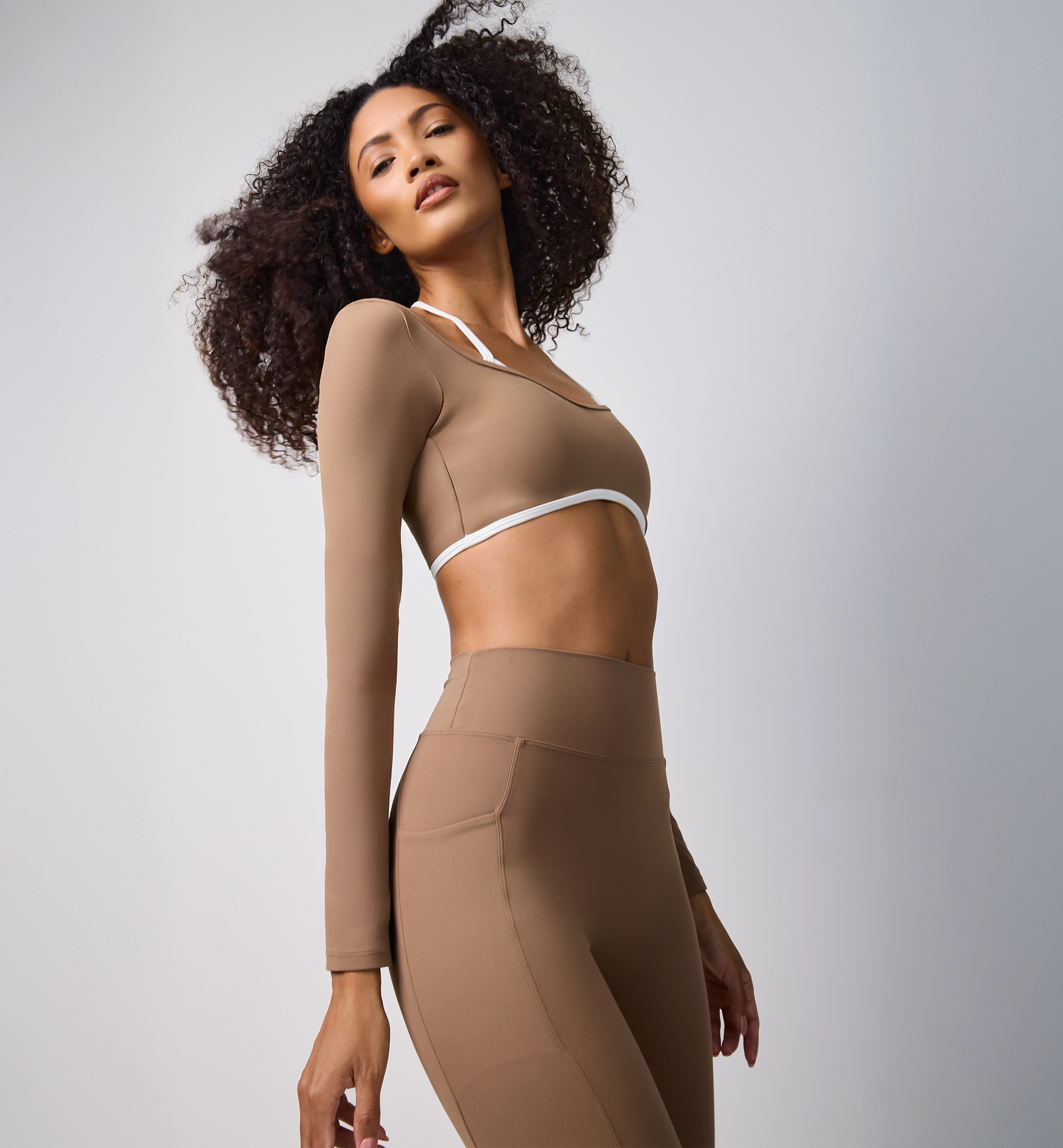 Crafted with precision, the premium fabric offers four-way stretch, sweat-wicking breathability, and gentle support that moves with you — not against you. Grounded was created for those who want their activewear to feel like a second skin, offering luxury performance without compromise.